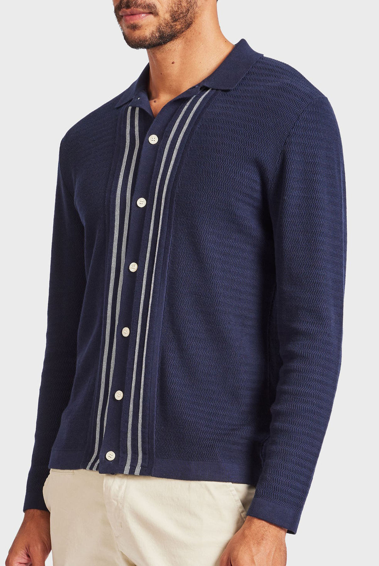 Ross Stripe LS Knit Shirt- Navy